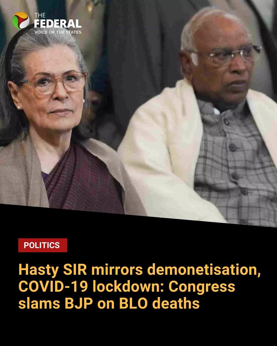 Kharge said the SIR campaign was being executed in twelve states and Union territories under tight deadlines and with excessive workload imposed on BLOs and polling staff. He described the process as “hasty, forced” and likened its roll-out to earlier national disruptions such as demonetisation and the COVID-lockdown, suggesting similar flaws of planning and execution. He wrote in a post: “The BJP’s vote theft has now taken a deadly turn. Overburdened with workload, BLOs and Polling Officers are being driven to suicide.”